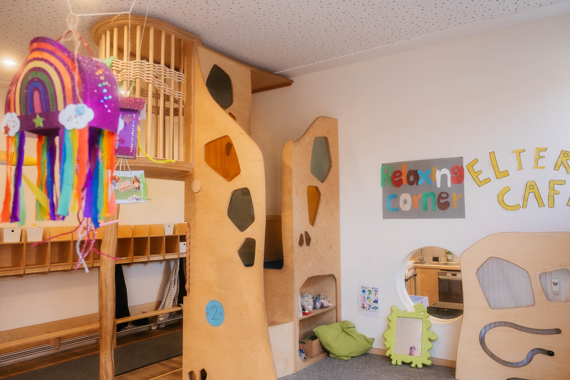 Direkt im Eingangsbereich lädt unser Elterncafé zum Ankommen, Austauschen und Vernetzen ein. Es ist Teil unseres Familienzentrums, das Angebote für die ganze Familie schafft – von Elterncafés bis zu Wochenendaktionen.