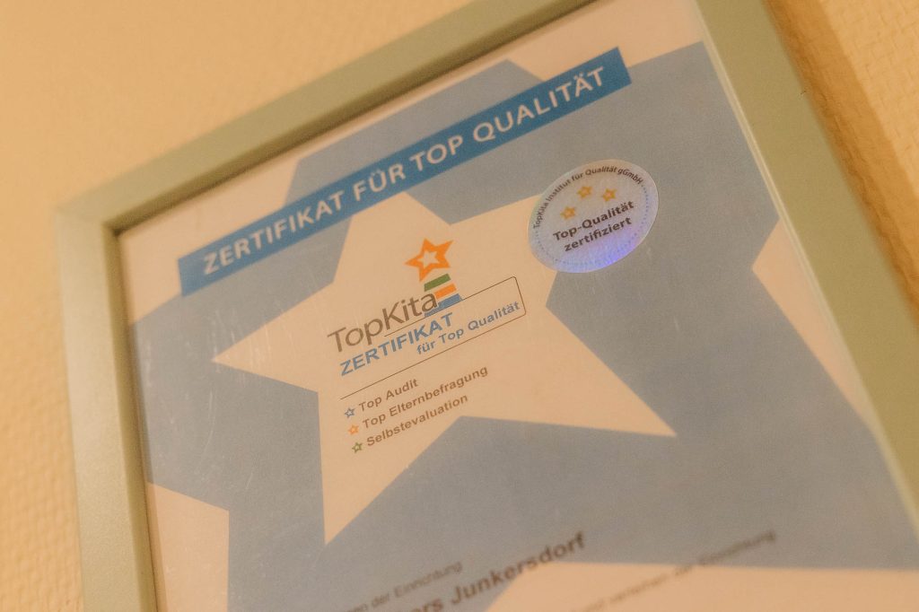 Alle unsere Einrichtungen sind TopKita-zertifiziert – mit Eltern- und Kinderbefragungen, Selbstbewertungen und externen Audits. So wird Qualität nicht nur versprochen, sondern sichtbar.